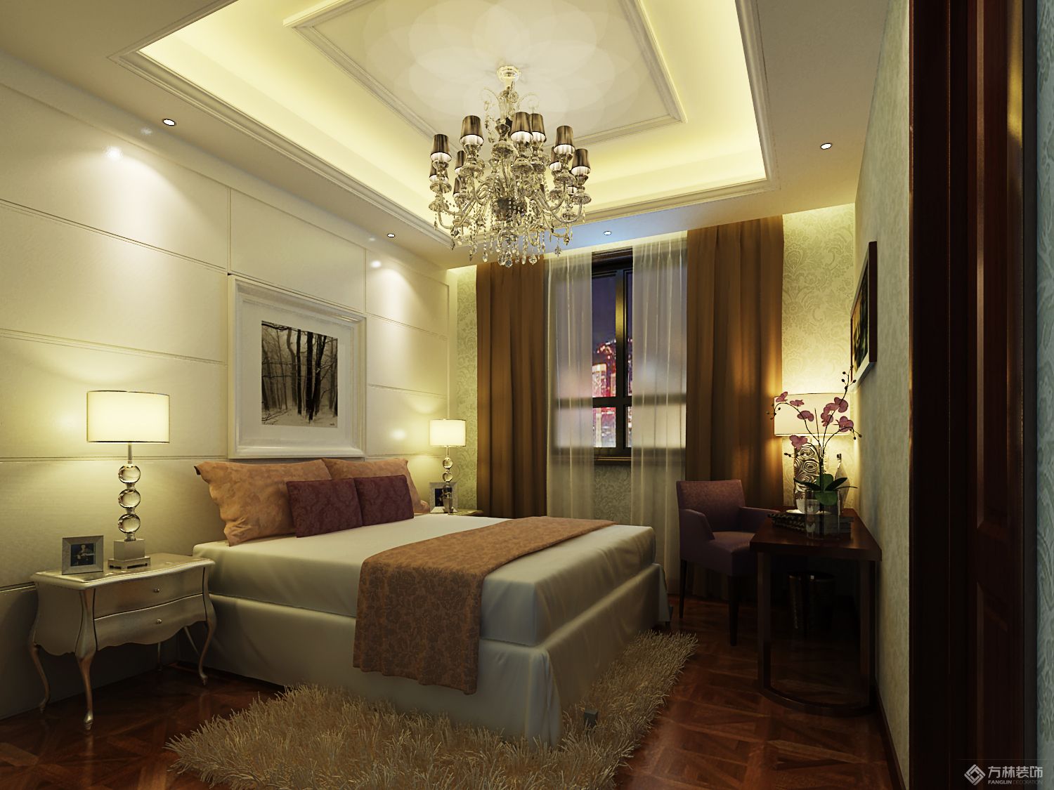 设计理念:本案的设计风格为简约欧式,营造典雅、自然、高贵的气质、浪漫的情调是本案的主题。简约、质朴的设计风格是众多人群所喜爱的,生活在繁杂多变的世界里已是烦扰不休,而简单、自然的生活空间却能让人身心舒畅,感到宁静和安逸;藉着室内空间的解构和重组,便可以满足我们对悠然自得的生活的向往和追求,让我们在纷扰的现实生活中找到平衡,缔造出一个令人心弛神往的写意空间。
