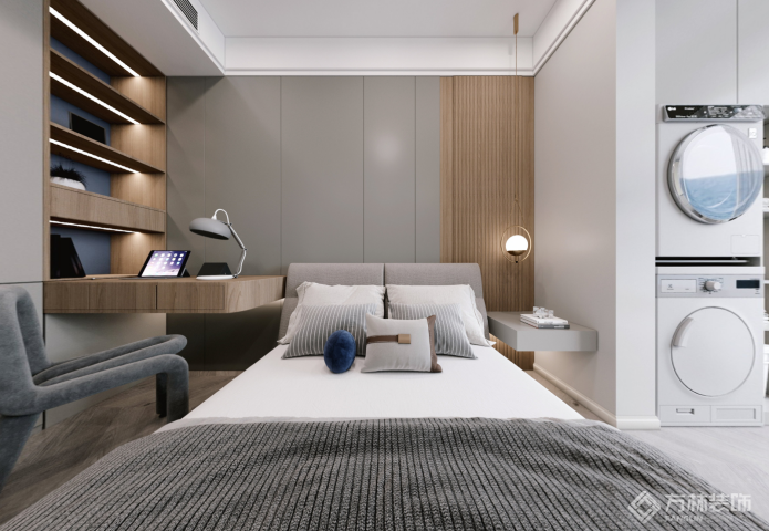 设计理念:放松下来沉思,与内心对话。城市现代化的高速发展,人们精神上现代性的迅速转换,造就“栖居远逝”的困境,个人生活的迁徙不定,使现代心灵无处依托,在喧嚣中拥有一方守静之地,似已成为每个城市人的期待。伊派设计意在为居住者打造一种沉稳而内敛,低调的宁静感,从细节处为居住空间注入艺术的氛围
