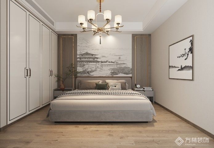 设计理念:新中式风格有东方韵味是一种传承,亦是一种创新,它扎根于中国传统文化的土壤之中,取其精华、舍其繁琐,以现代人的审美眼光来弘扬中国古典文化。在中国风成为流行的当下,古典风格与现代元素的激情碰撞,衍生出了格调高雅、简约大气的新中式空间。它立足于传统,又施之以创新,经过不断的提炼和丰富后自成一派,呈现出了极为浓郁的东方情调